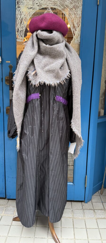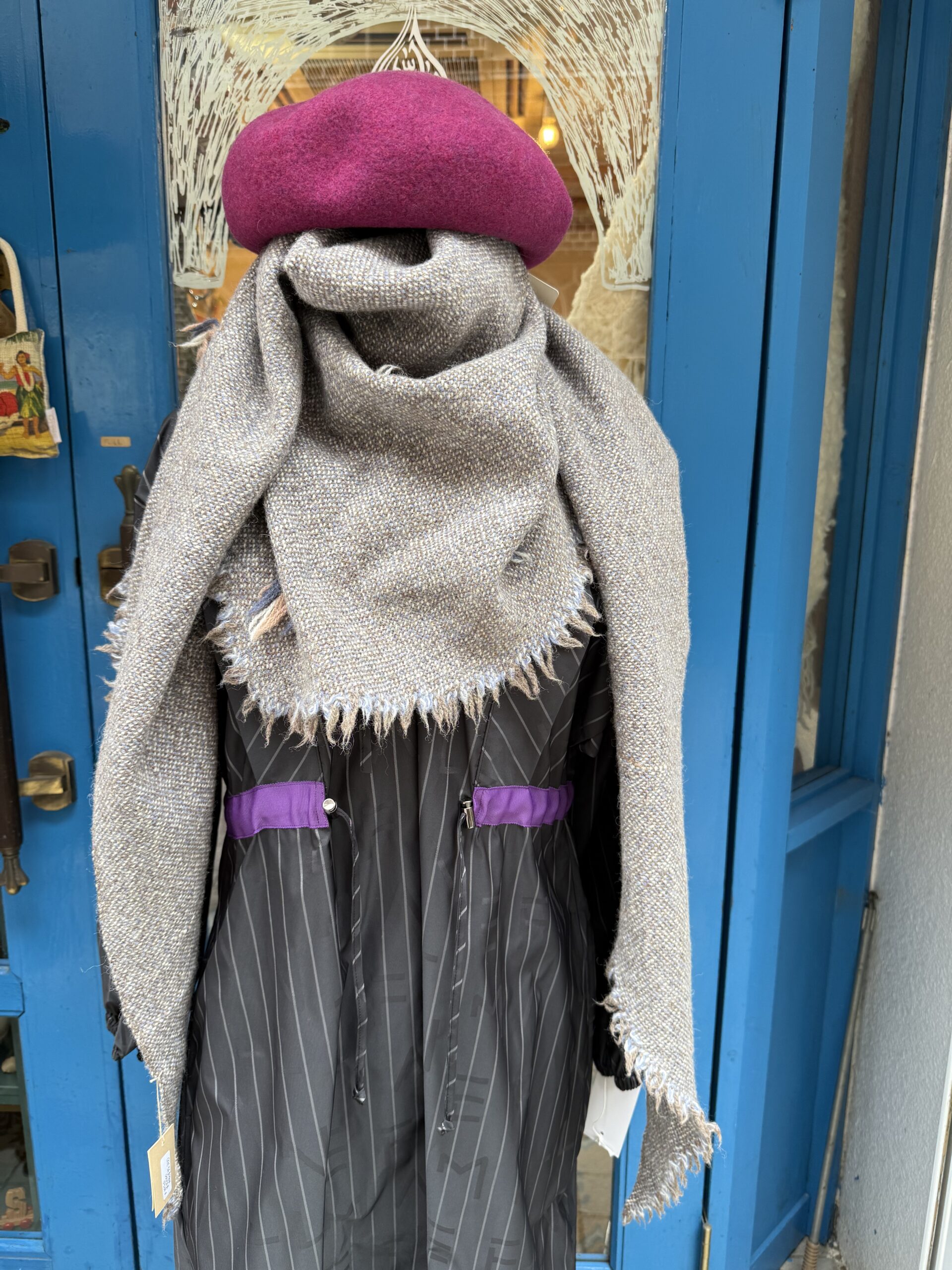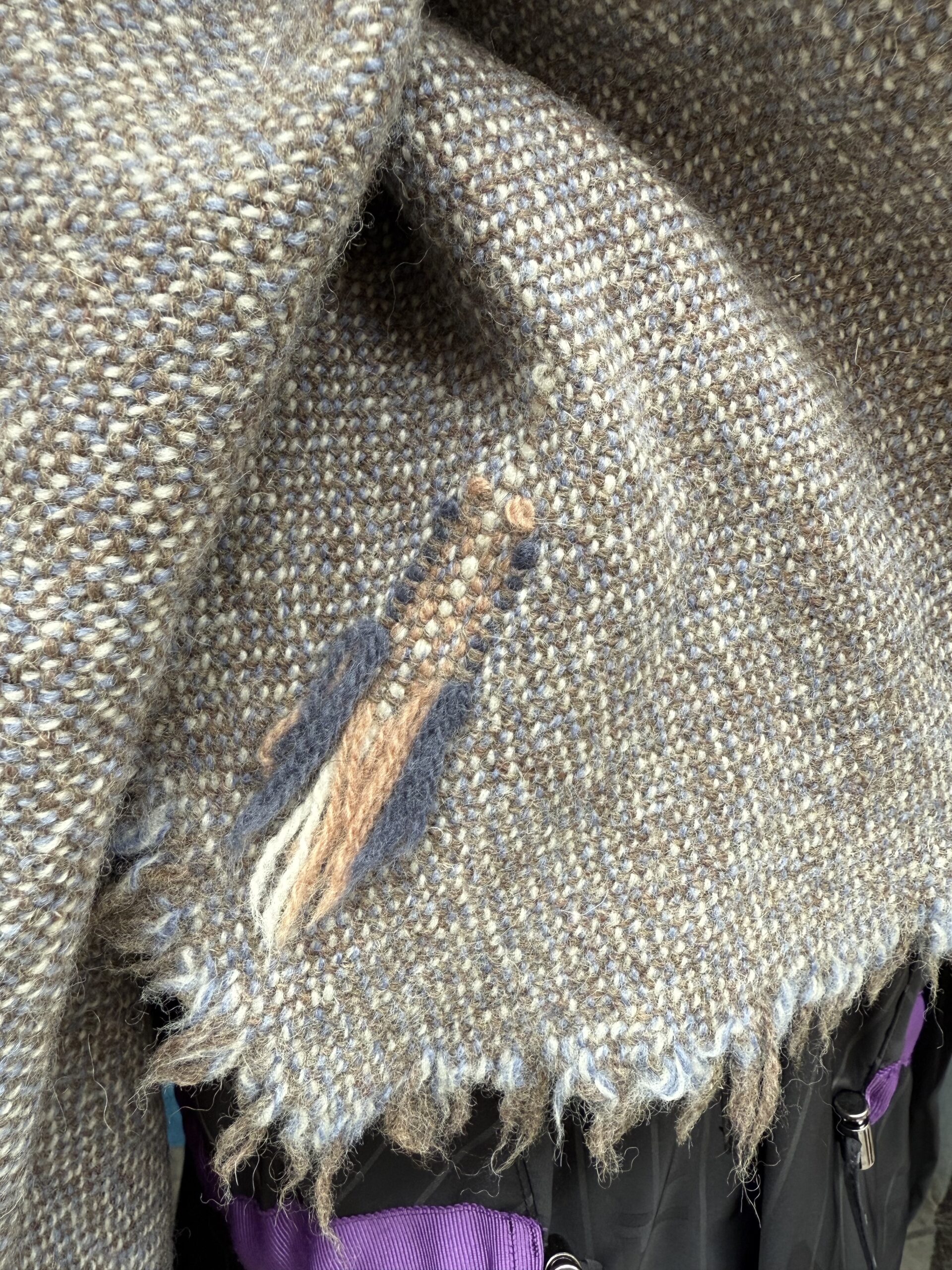 エストニアの手織りストールに鳥をイメージした織が施された三角ストール