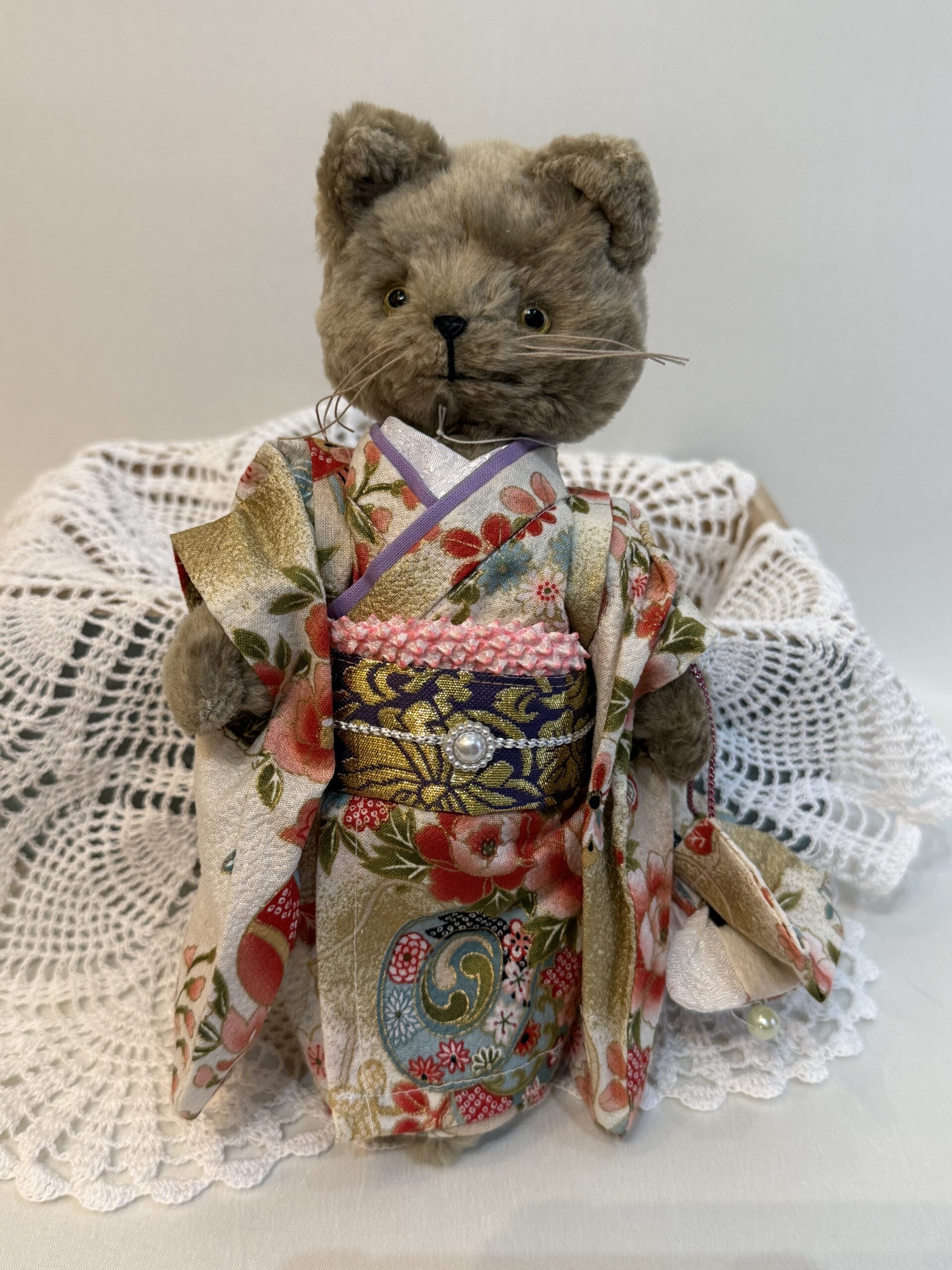 テディベアアーティスト KAZARIYAさんの振袖ねこさん