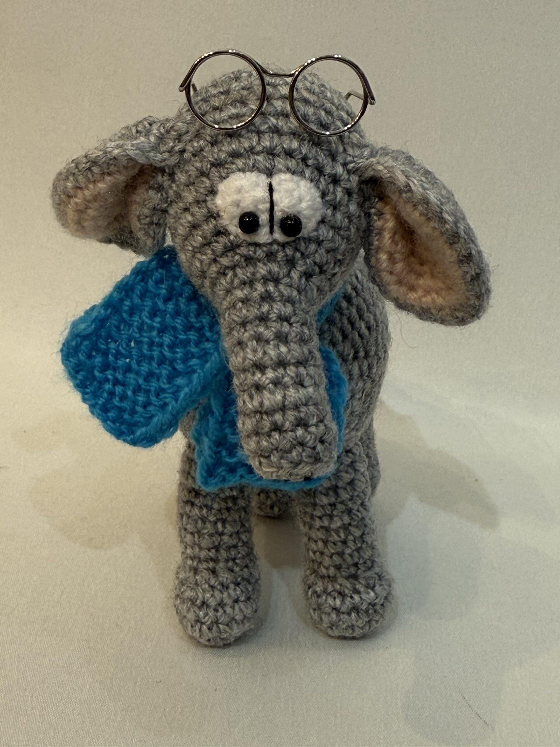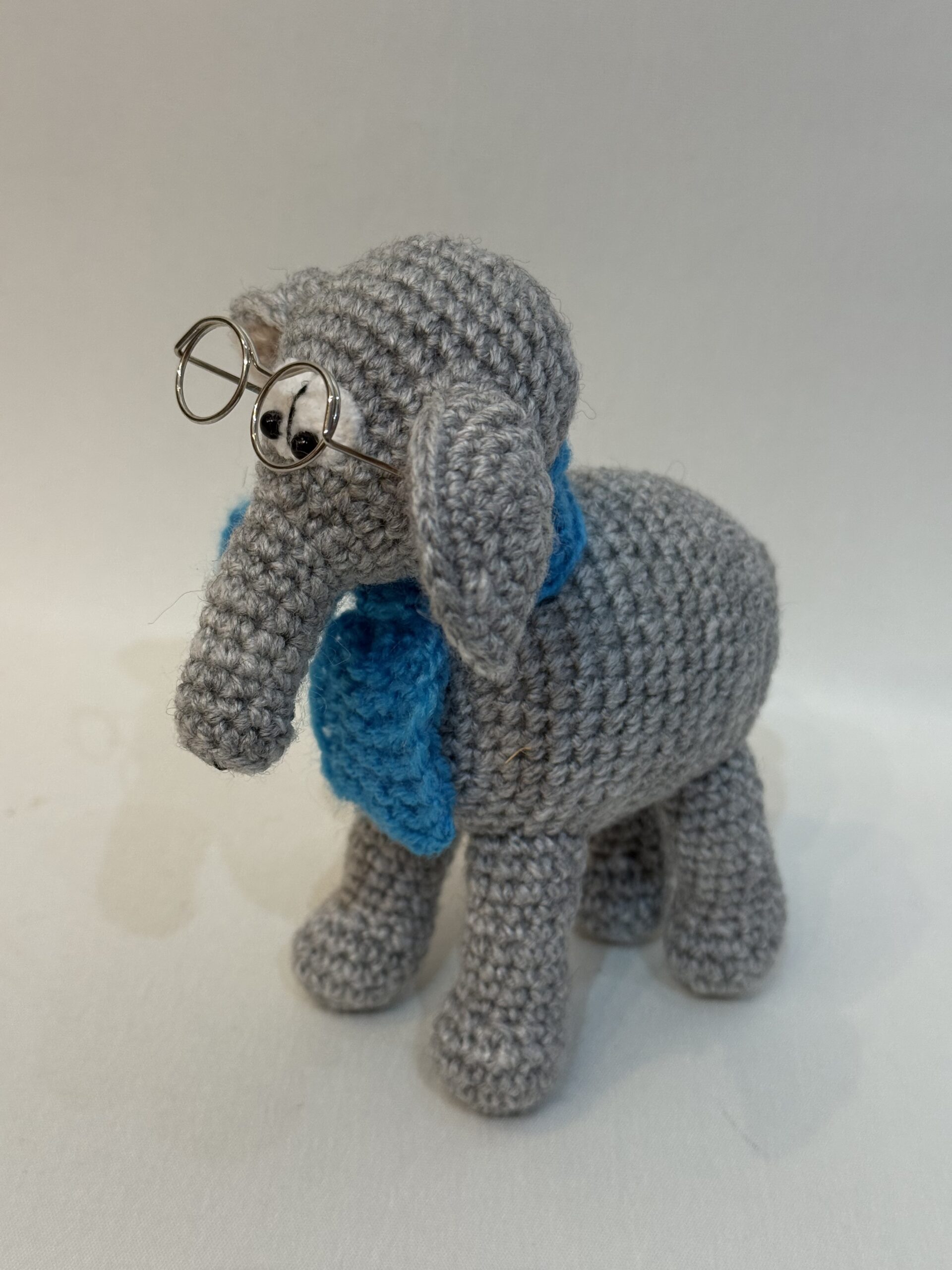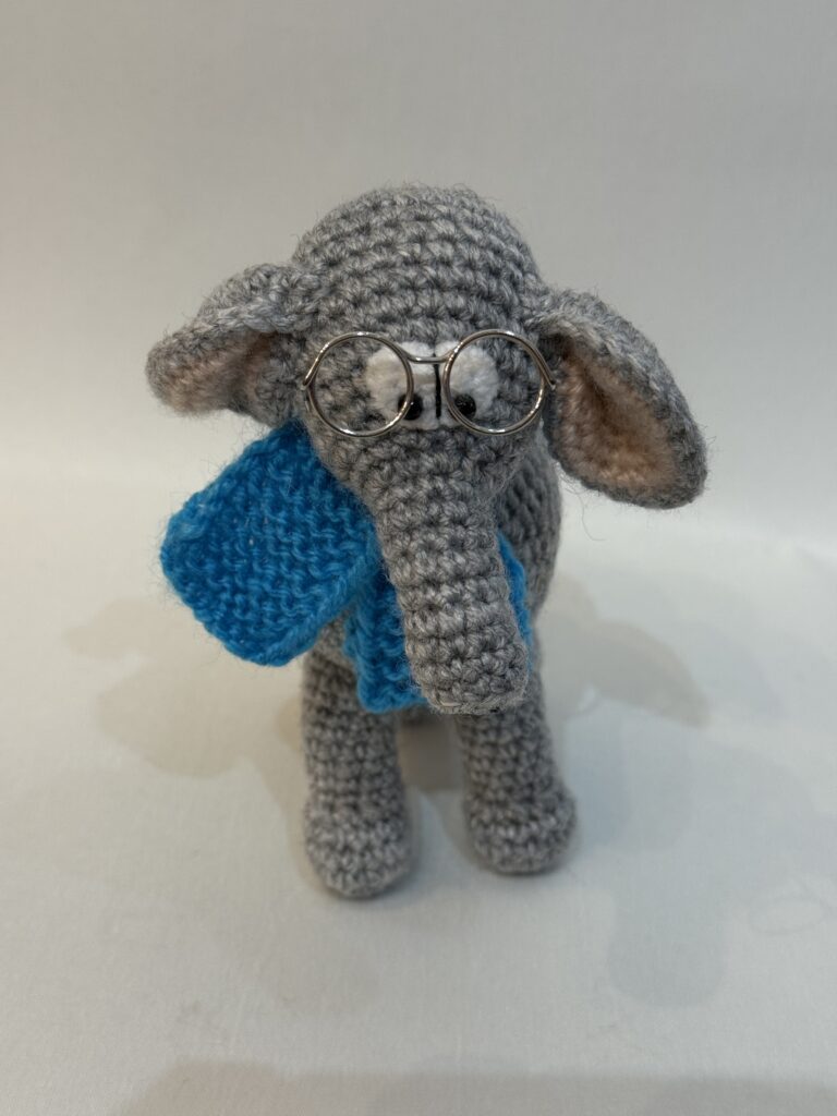LIENEさんの編みぐるみ【メガネをかけたゾウさん】