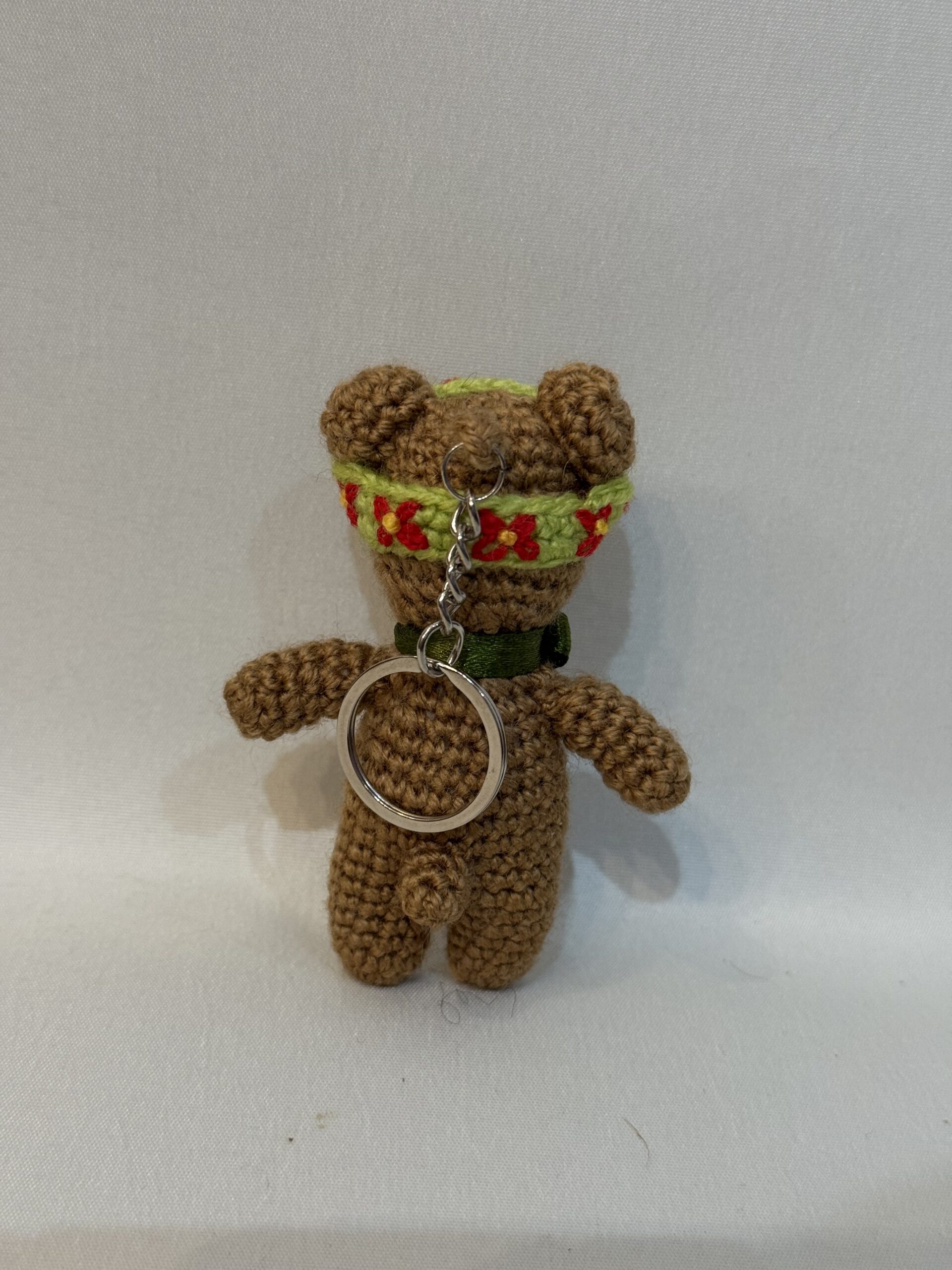LIENEさんの編みぐるみ【夏至祭の花冠を被ったクマのキーホルダー】