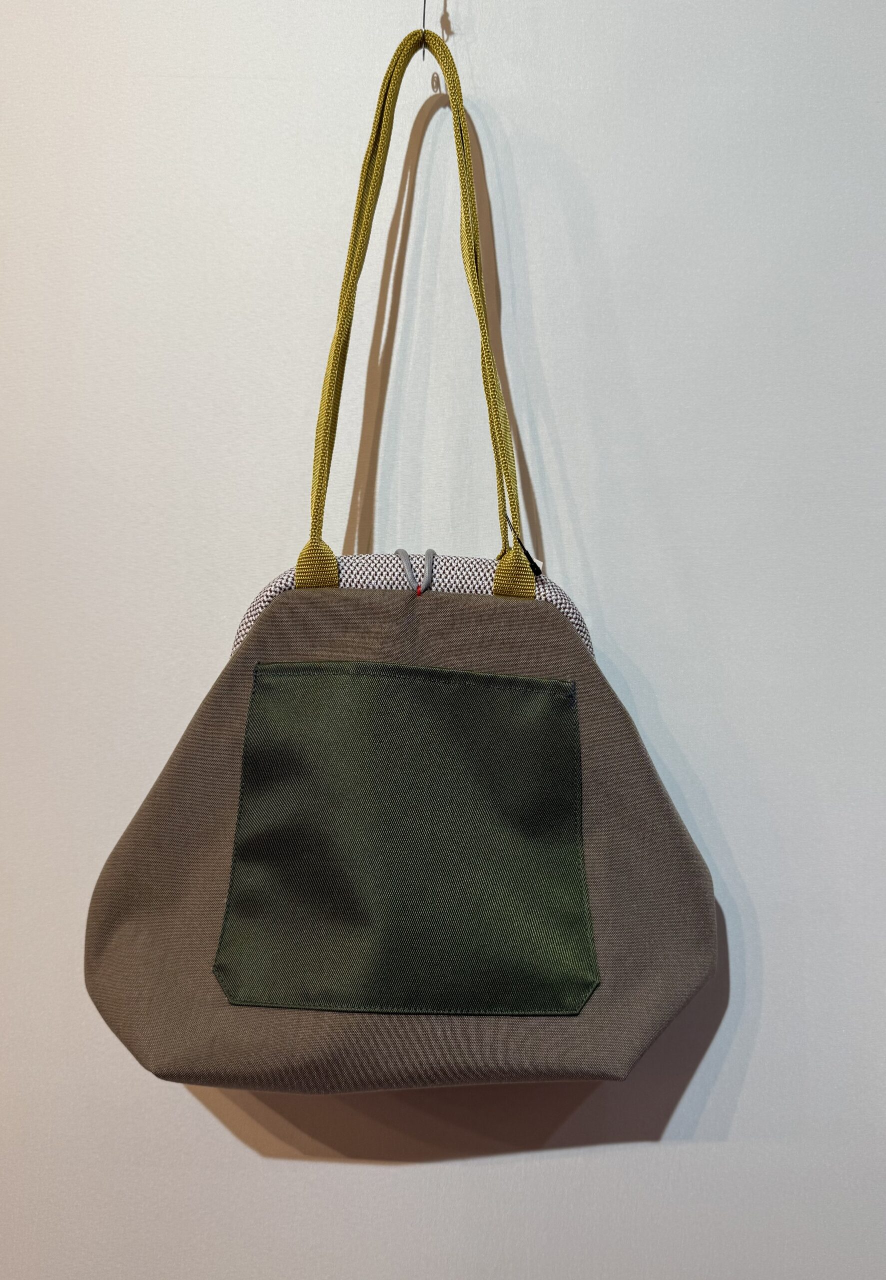サイズ:縦22㎝×横30㎝×マチ11㎝、入れ口幅18㎝、肩掛け可。