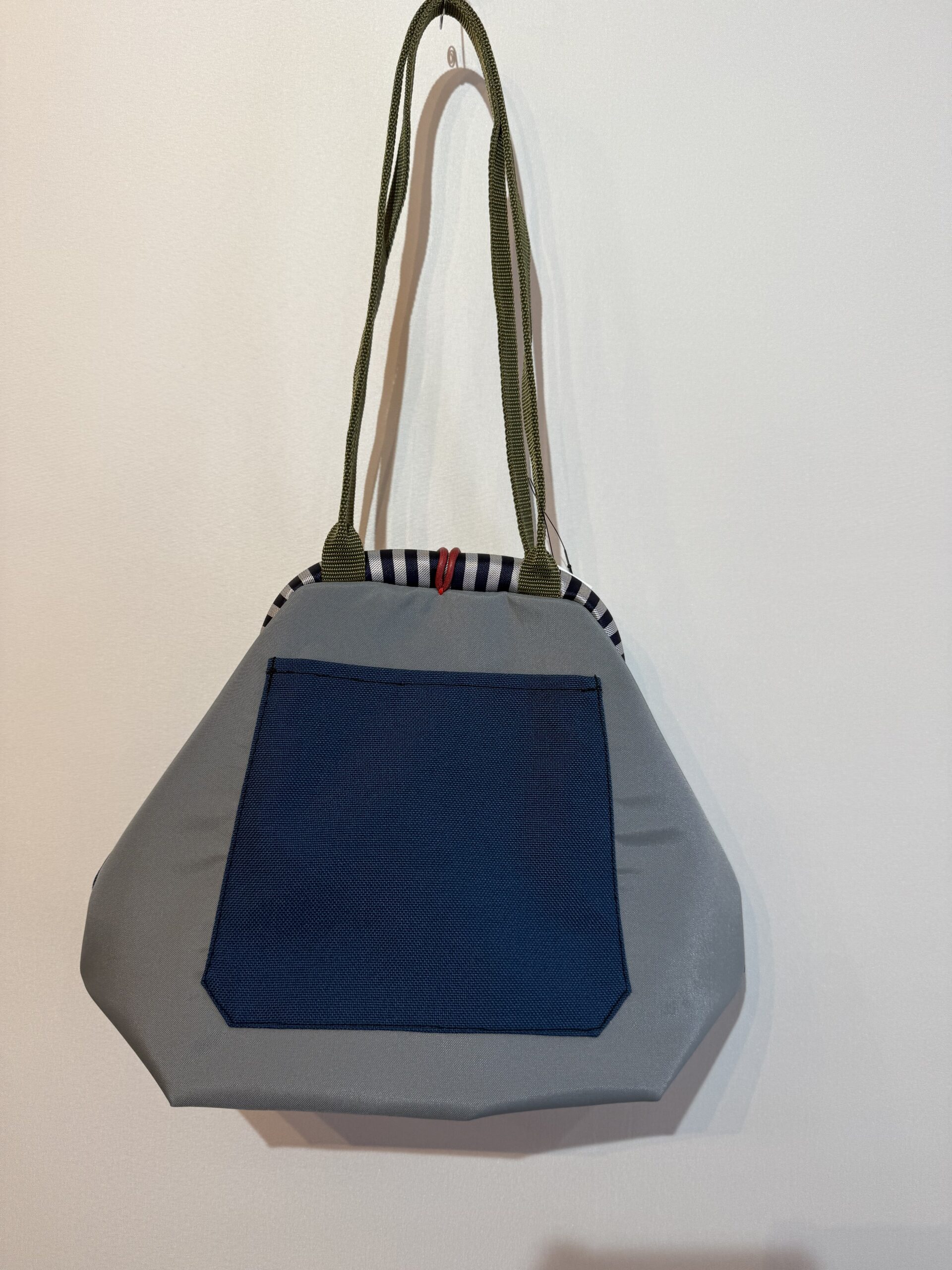 サイズ:縦22㎝×横30㎝×マチ11㎝、入れ口幅18㎝、肩掛け可。